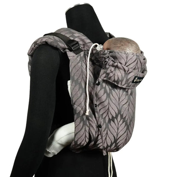Didy Onbuhimo made from our Trias Rosé wrap fabric - lightweight and woven from best organic cotton and linen. Slate grey and rosé coloured yarns interplay to add still more appeal and style to our decorative Trias pattern.
