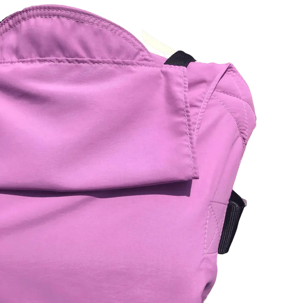 This sleek one-piece design incorporating a large sun/sleeping hood that fastens with small buckles to the shoulder straps to keep baby shaded or support a sleeping head. the ideal hot weather baby carrier but also versatile in all seasons.