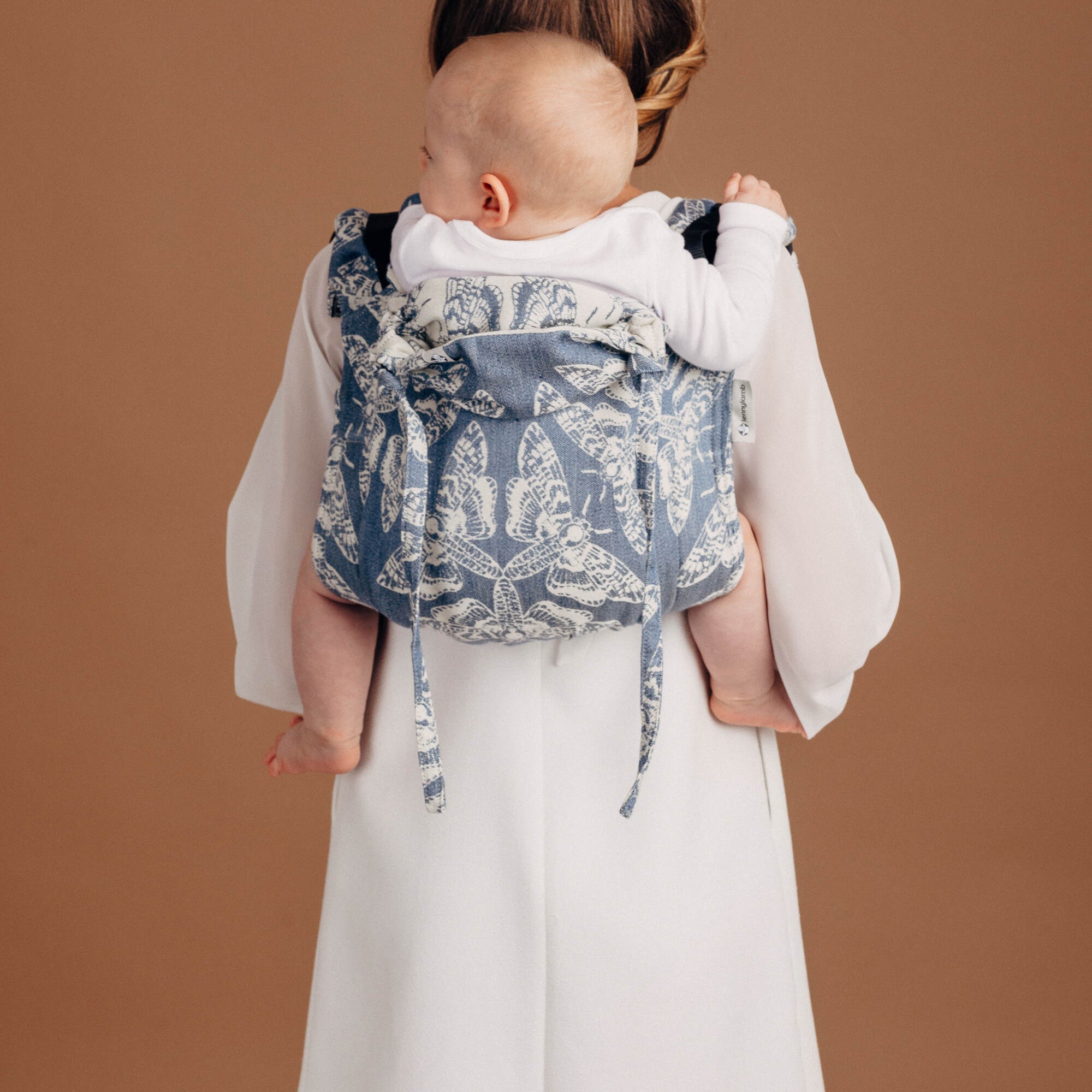 An onbuhimo is a waistless back carrier with a simple chest buckle, designed to sit high on your back for a comfortable, compact carry. Without a waistband, onbuhimos are ideal for pregnant parents, anyone who finds waistbands uncomfortable, and parents who prefer a lighter, more streamlined carrier.