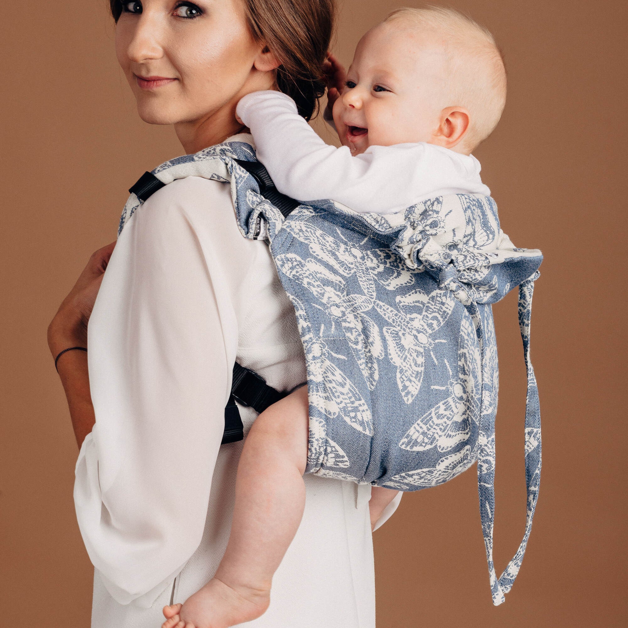 Our onbuhimos come from Happy! Baby, LennyLamb, Didymos, and Oscha. Each one features ergonomic M-position seating, adjustable panels, and premium fabrics. They fold up small enough to toss in a bag, making them a favorite travel carrier.