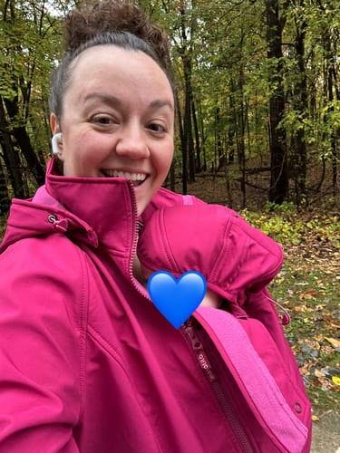 The berry color is gorgeous — deep, rich, and even more beautiful in person than online. The softshell material is smooth, lightweight, and just cozy enough for those brisk walks. I get stopped all the time by people asking where I got it, and of course I can’t help but gush about the jacket, babywearing, and Little Zen One. Honestly, if you’re even thinking about it, just buy it — it’s amazing, and I regret waiting so long to make my decision!