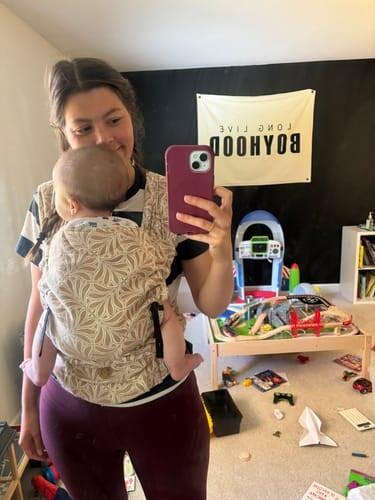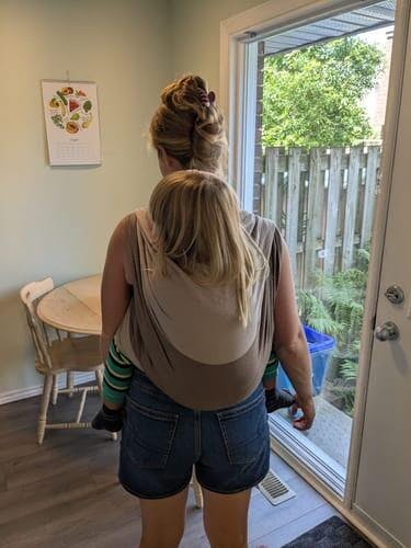 I love this carrier! My baby loved the stretchy wrap and then the woven wraps, but he really despised our other full-buckle carrier — it just wasn’t for him. This one is perfect because it has the wrap-style straps that he loves, plus the buckle on the waist so I can put his weight there instead of my shoulders. We even tried back carries with this first to help him get used to being carried, which gave me the confidence to start practicing with my woven wraps.
