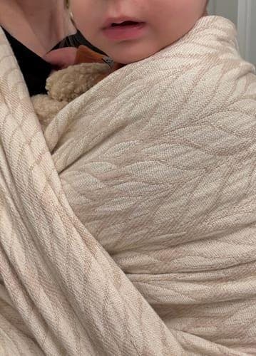 This was my very first woven wrap, and honestly, I was so nervous at first. When it arrived it felt kind of like a screen door — super different from my stretchy wrap! But after a few wears and washes it softened up so much, and now I absolutely love it. My baby was already over 16 pounds at 3 months, and this wrap has been perfect — super supportive but still thin and breathable, which is great since he runs hot. The Stracciatella is such a pretty neutral too — it actually shows up a bit darker in person than the photos, and I love that about it. I originally bought it thinking it’d be my “one and done” wrap… but nope, now I’m totally hooked and keep coming back to Little Zen One for more!