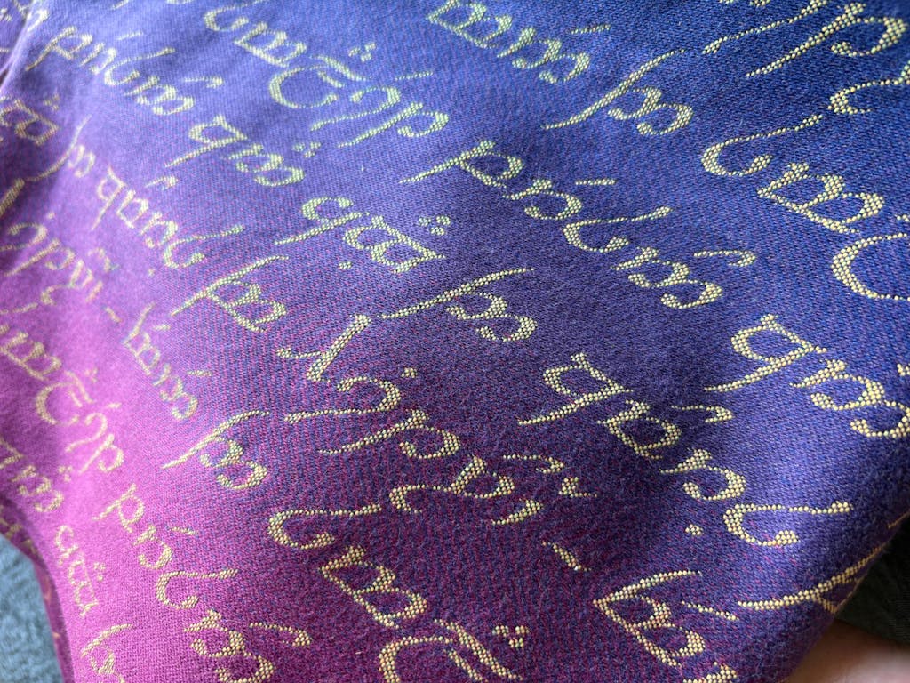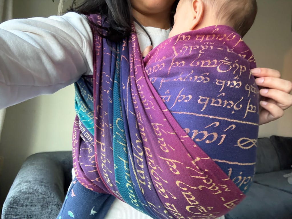 Iβm a big LOTR fan and this wrap is everything! Itβs strong and the perfect shorty. I got a size 2 and even though itβs the smallest size available, itβs still great with my toddler. I can do a no sew ring sling or ruck tied at the shoulder. The weave is so beautiful. Itβs like wearing artwork!
