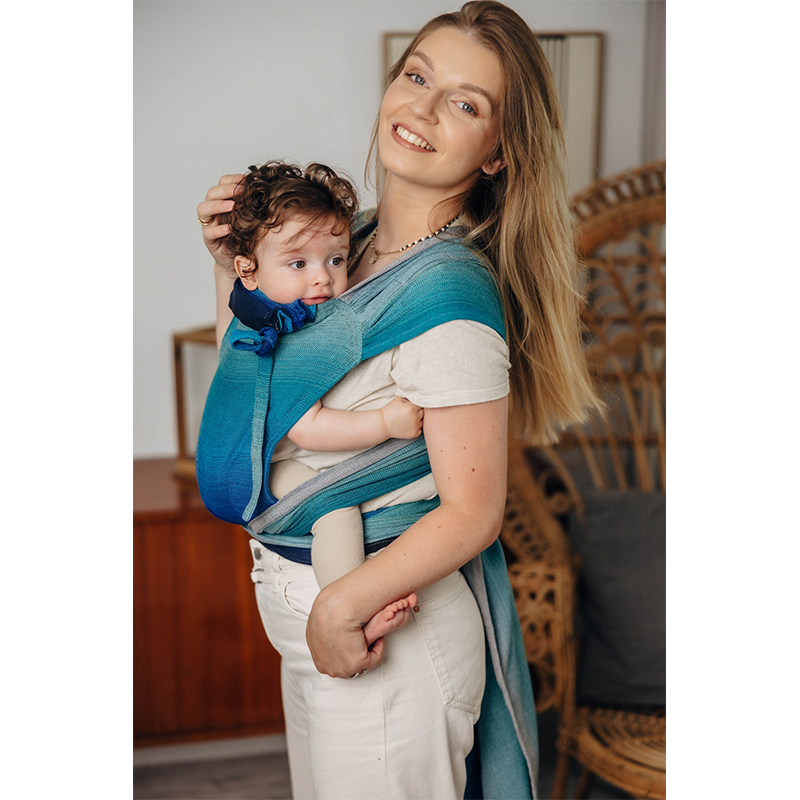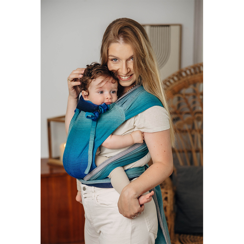The simplicity and comfort of a soft structured carrier and the versatility of a wrap, this hybrid carrier is a hit, the WrapTai baby carrier. Wear it Tummy to tummy, on your hIp, or on you back from 4 months up.