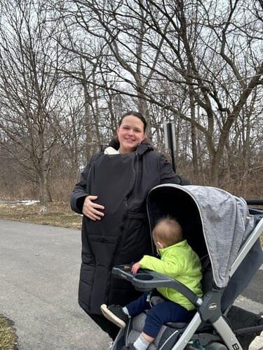 The coat can be comfortably worn with your baby on your front, back, or on it's own with no insert You can also carry one child on the front, and one on the back using two inserts. This warm Angel Wings winter babywearing coat is designed for those babywearing in cold weather!