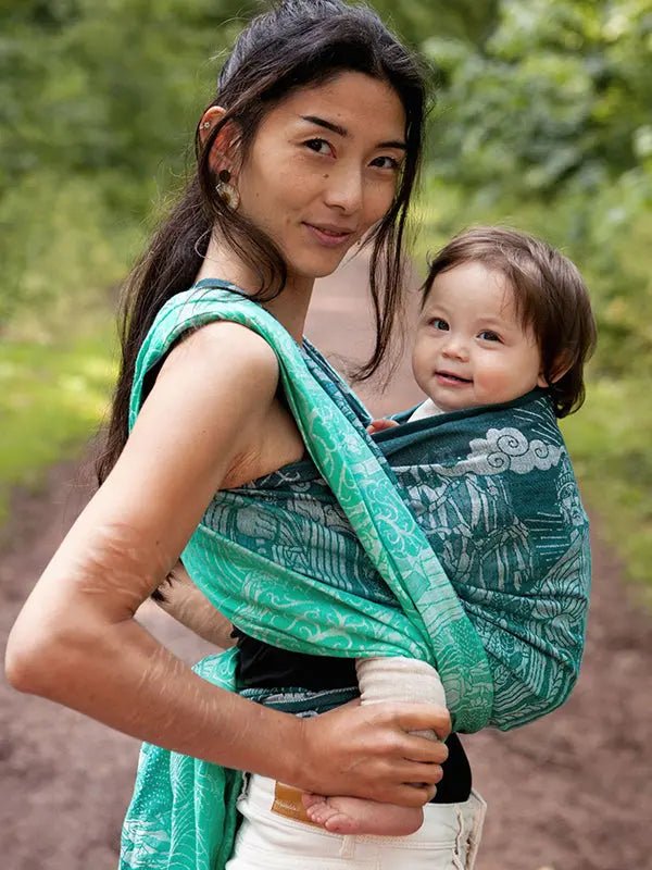 Infinitely adjustable, Oscha woven wraps can be tied in a variety of ways.