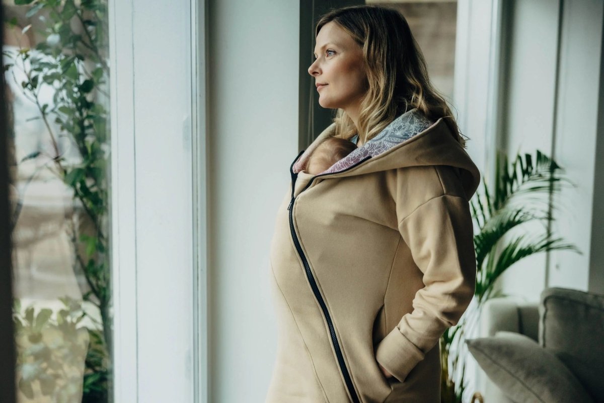 This Babywearing Hoodie is the perfect combination of comfort, versatility, and style. With its soft knitted fabric and stunning prints, you can wear it in pregnancy, over your baby carrier on the front or back, and without baby!