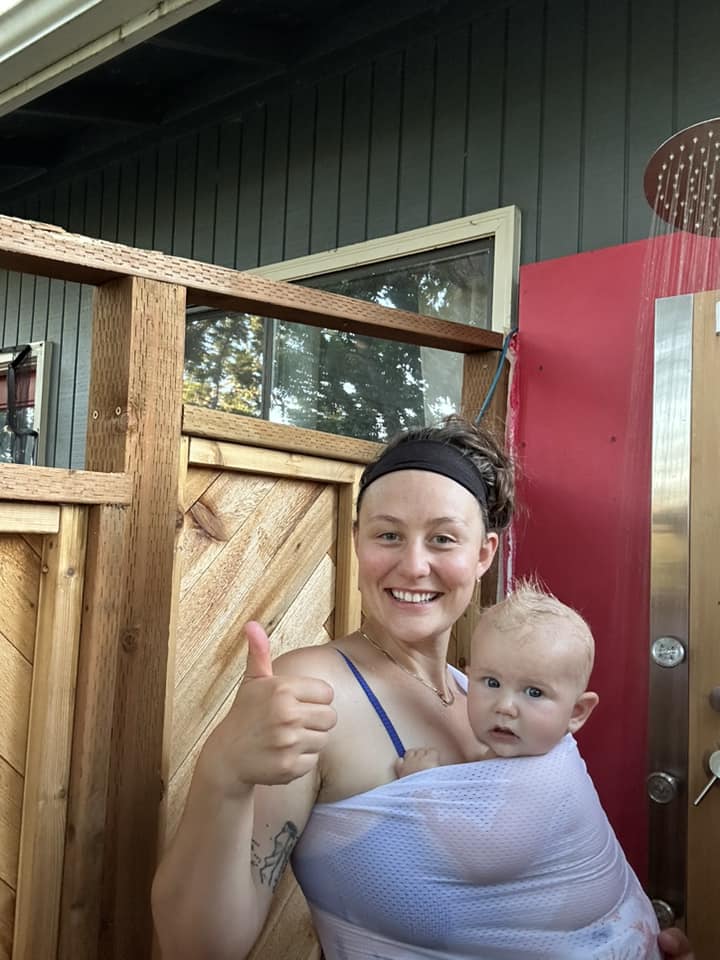 - Water Wrap — A stretchy mesh wrap that ties on like a traditional stretchy wrap. More coverage, hands-free in the water.