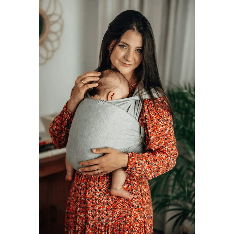 You can tie it on and then insert baby so you do not have to tie around the baby. You can put the baby in and out of it during the day without tying the sling again. Choose a stretchy wrap if you want a simple and comfortable solution for the early months