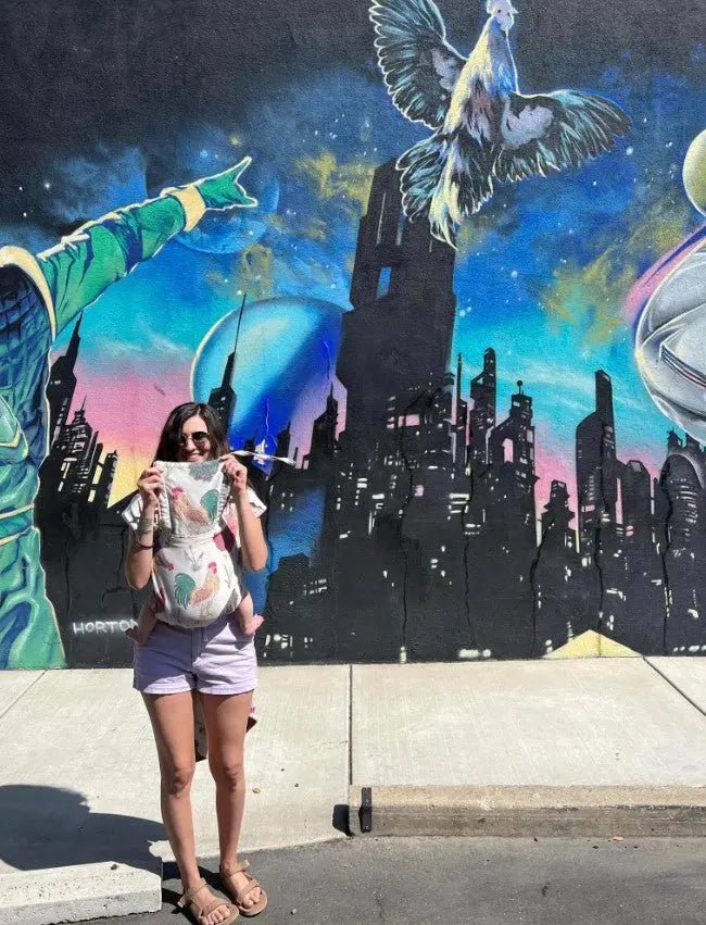The simplicity and comfort of a soft structured carrier and the versatility of a wrap, this hybrid carrier is a hit, the WrapTai baby carrier. Wear it Tummy to tummy, on your hIp, or on you back from 4 months up.