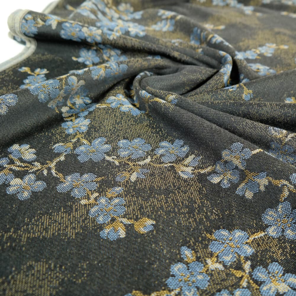 Classy and elegant, the anthracite cotton is the perfect background to highlight the beauty of the blossoms pattern. A Jacquard weave, the pattern is the same on both fabric sides, artfully reversing the gold and light blue colored cotton yarns.