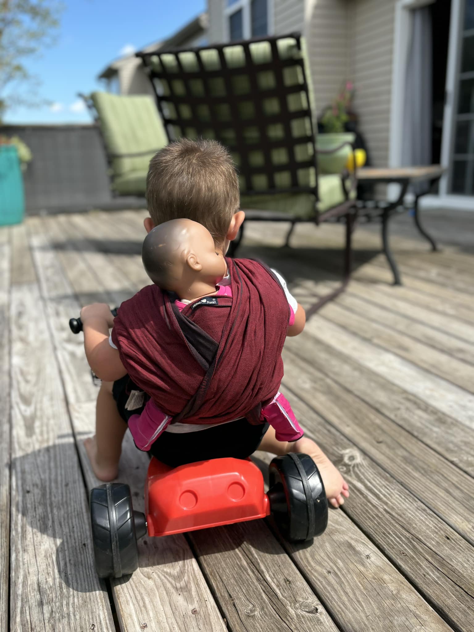 With one side in shimmering black, the other in a deep burgundy red, this wrap is very classy and bit dramatic. Extremely soft, woven in a sturdy but delicate weave, with perfect diagonal stretch. Perfect for beginners and experienced wrappers.