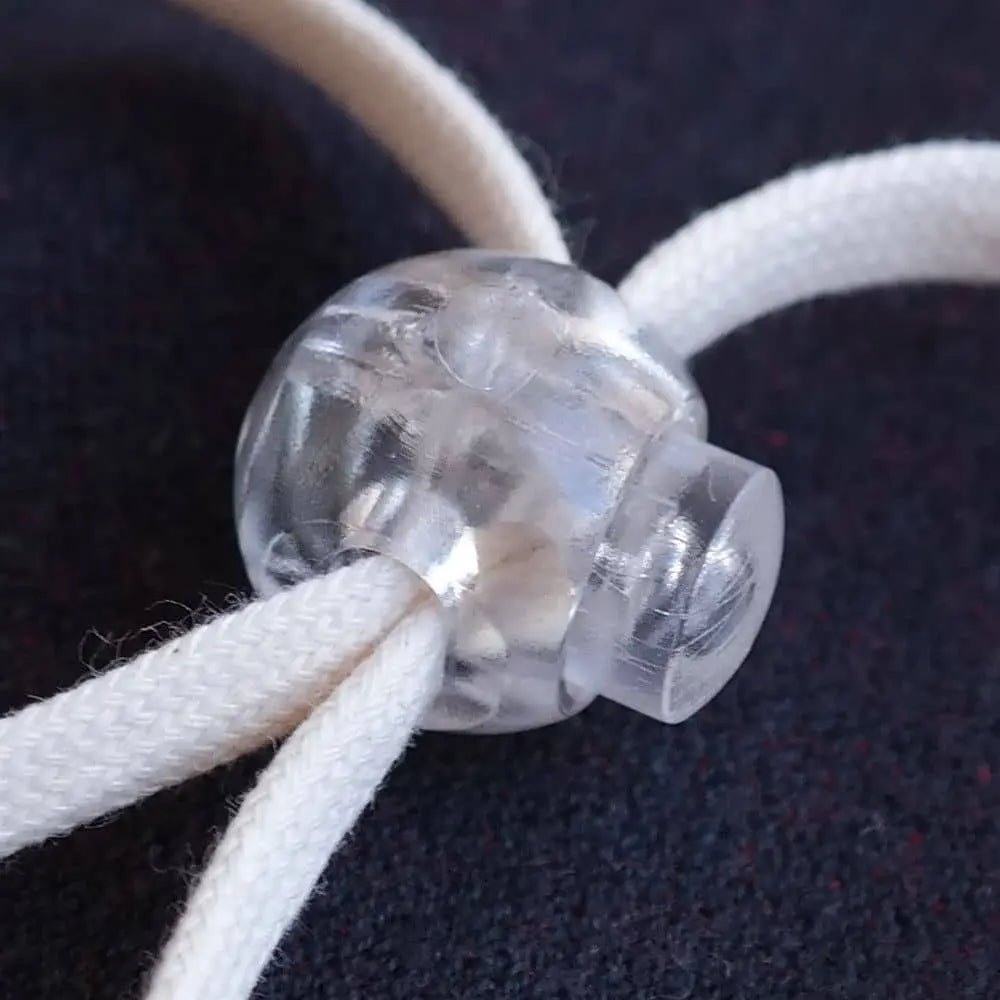 Cord lock or toggle to adjust the length of drawstrings or cords.