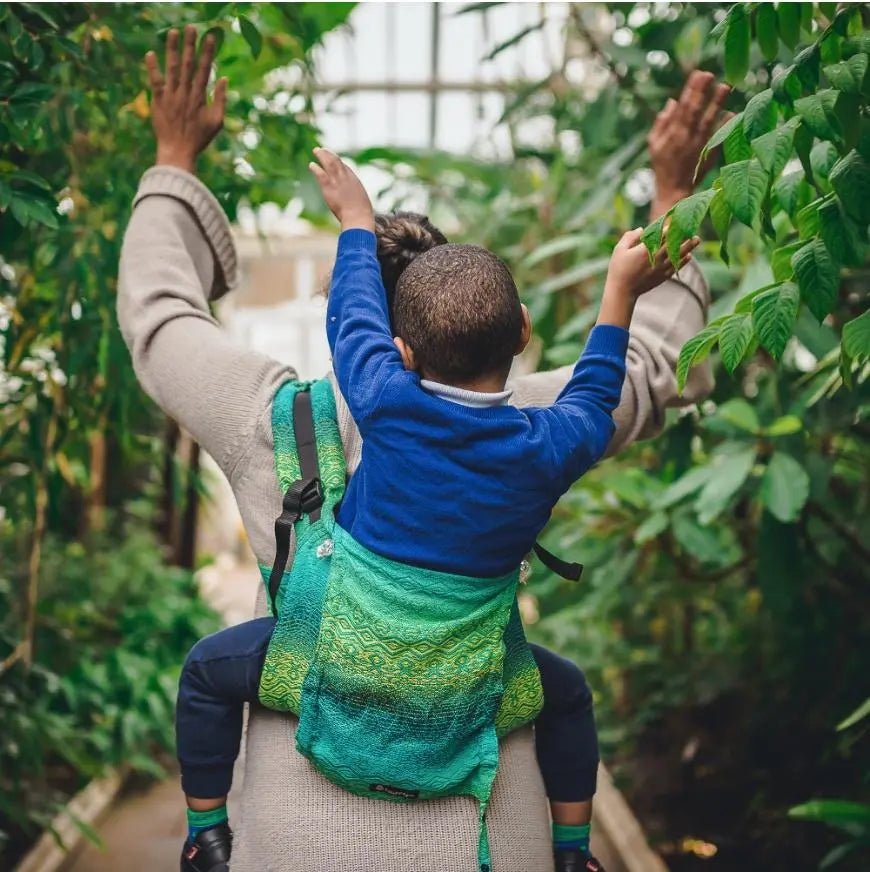 Didymos DidyGo Onbuhimo Hearts Malachite. Toddlers love to explore the world on their own once they can crawl or walk. But they also love and need to be worn and held close to their parents. The Didymos Onbuhimo baby carrier is a great way to fill that need.
