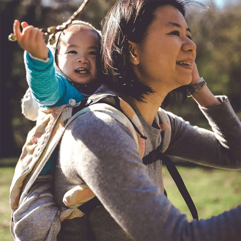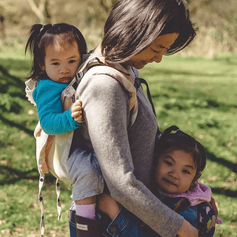 The DidyGo Onbuhimo is a waistless baby carrier designed to be worn on the back for children 15–45 lbs (7–20 kg) or approximately 6 months and up. Inspired by the traditional Japanese Onbuhimo style, it offers quick on-and-off convenience — perfect for little ones who like to alternate between walking and being carried.