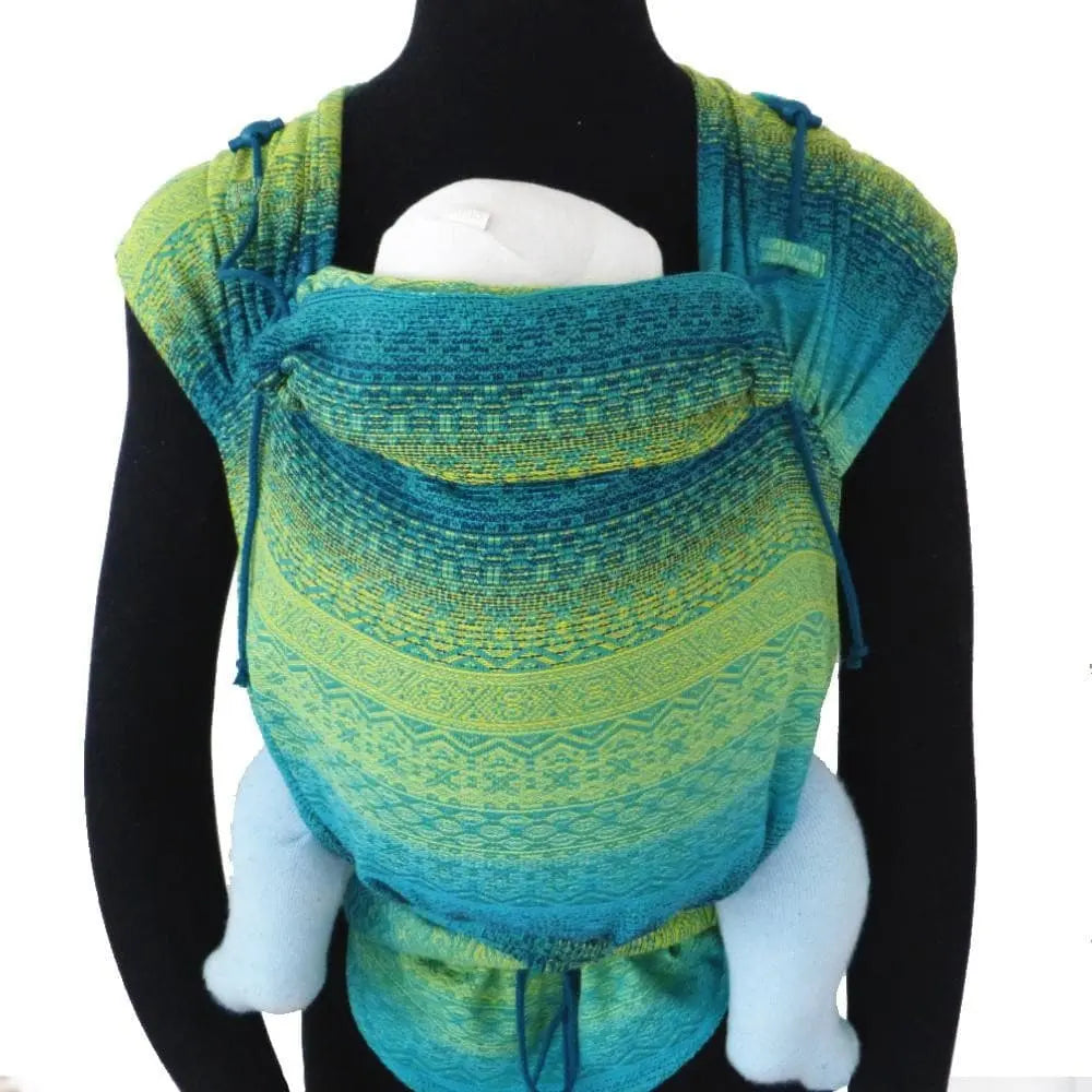 The comfort and support of a woven wrap with the ease and form of a quick tie style carrier. They are used from newborn to toddler as the length and width of the front panel are adjustable. These carriers came come in one size and fit wearers from approximately US size 0-22. They are are a great alternative to soft structured carriers for the infant stage and will grow with your baby.