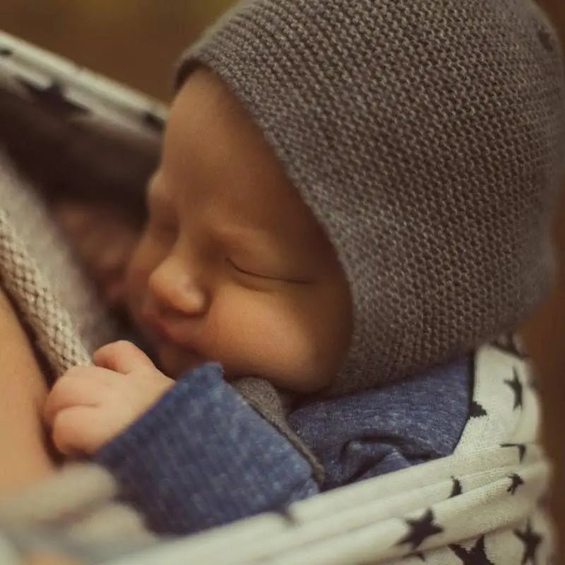Cradle your baby in organic comfort. The DIDYMOS Jersey Hybrid wrap is made from knit fabric of 100% organic cotton and features a double-fold finished hem for optimal support. Navy stars dance on a white backdrop on one side, the other side is a soft grey. It is as snuggly as a stretchy wrap and like a woven wrap, a hybrid can be used for single layer and back carries.