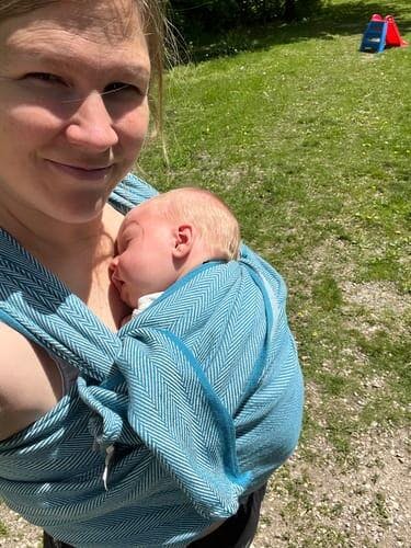 Didymos Lisca Petrol, a popular shimmery Lisca weave in a medium weight.