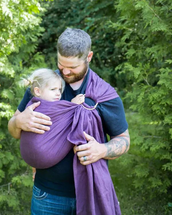 Ring slings are an easy-to-use, versatile carrier that allow you to wear your baby in a variety of positions with a custom fit each time. Designed to be longer than other brands, this sling will provide shoulder support and fit most wearers and babies comfortably while supporting strong bonding, hands-free convenience, and chest feeding on the go.