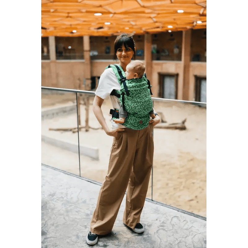 ATTENTION: Actual colors and pattern placement may vary from pictures. The color of the buttons can vary from the one presented in the pictures. Depending on the LOT of the product, the straps regulating the size of the carrier's panel can be solid black or in the colorway of the carrier.