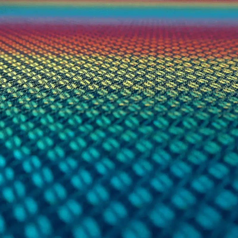 Rainbow colors dance across a dark blue background, this special edition was woven for European Babywearing Week. The fabric is light, strong, and textured.