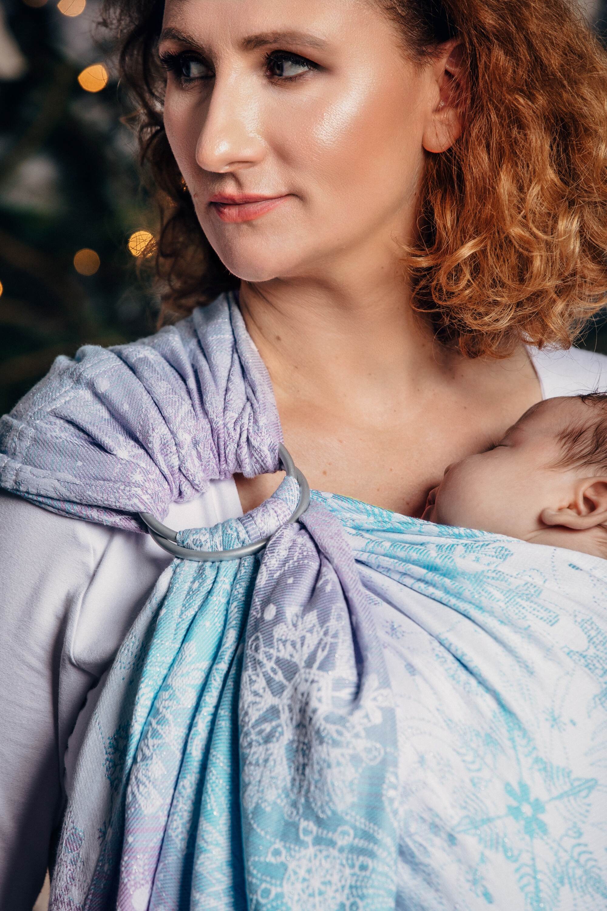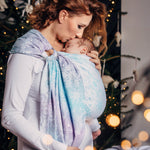 Glittering Snow Queen Design: A stunning winter-inspired design featuring sparkling silver and icy blue tones, reminiscent of a magical frozen wonderland. This exclusive colorway combines elegance with enchantment, perfect for creating memorable babywearing moments.