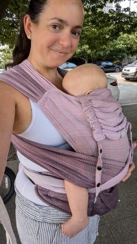 Herringbone Ombre Pink Hybrid Half Buckle by Lenny Lamb. From birth to about 24 months, a comfortable carrier that is easy to use and distributes weight well. Multilevel adjustment options for a perfect fit and healthy ergonomic positioning at all stages of your baby's development.