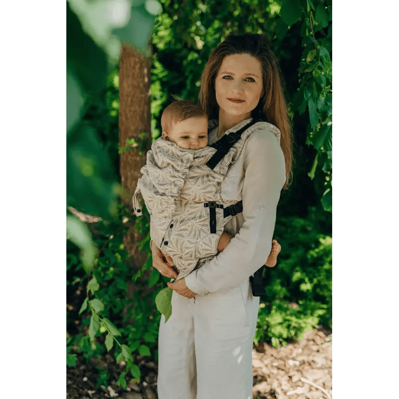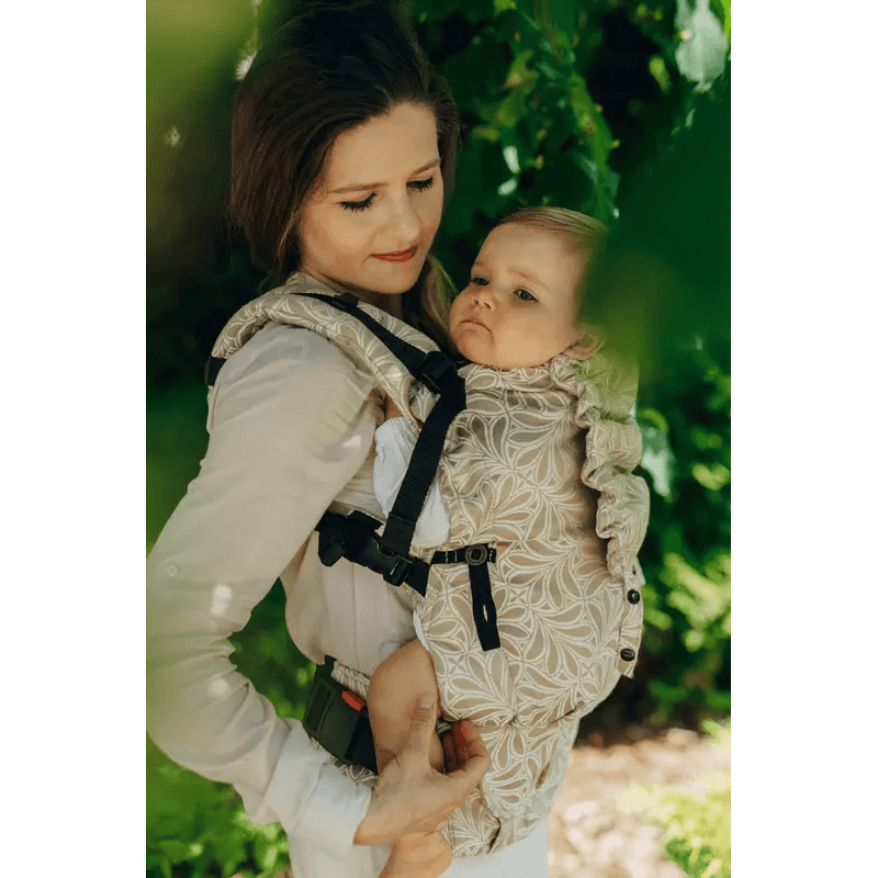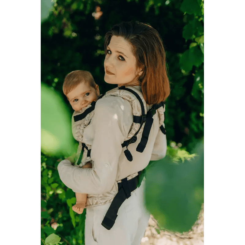 ATTENTION: Actual colors and pattern placement may vary from pictures. The color of the buttons can vary from the one presented in the pictures. Depending on the LOT of the product, the straps regulating the size of the carrier's panel can be solid black or in the colorway of the carrier.