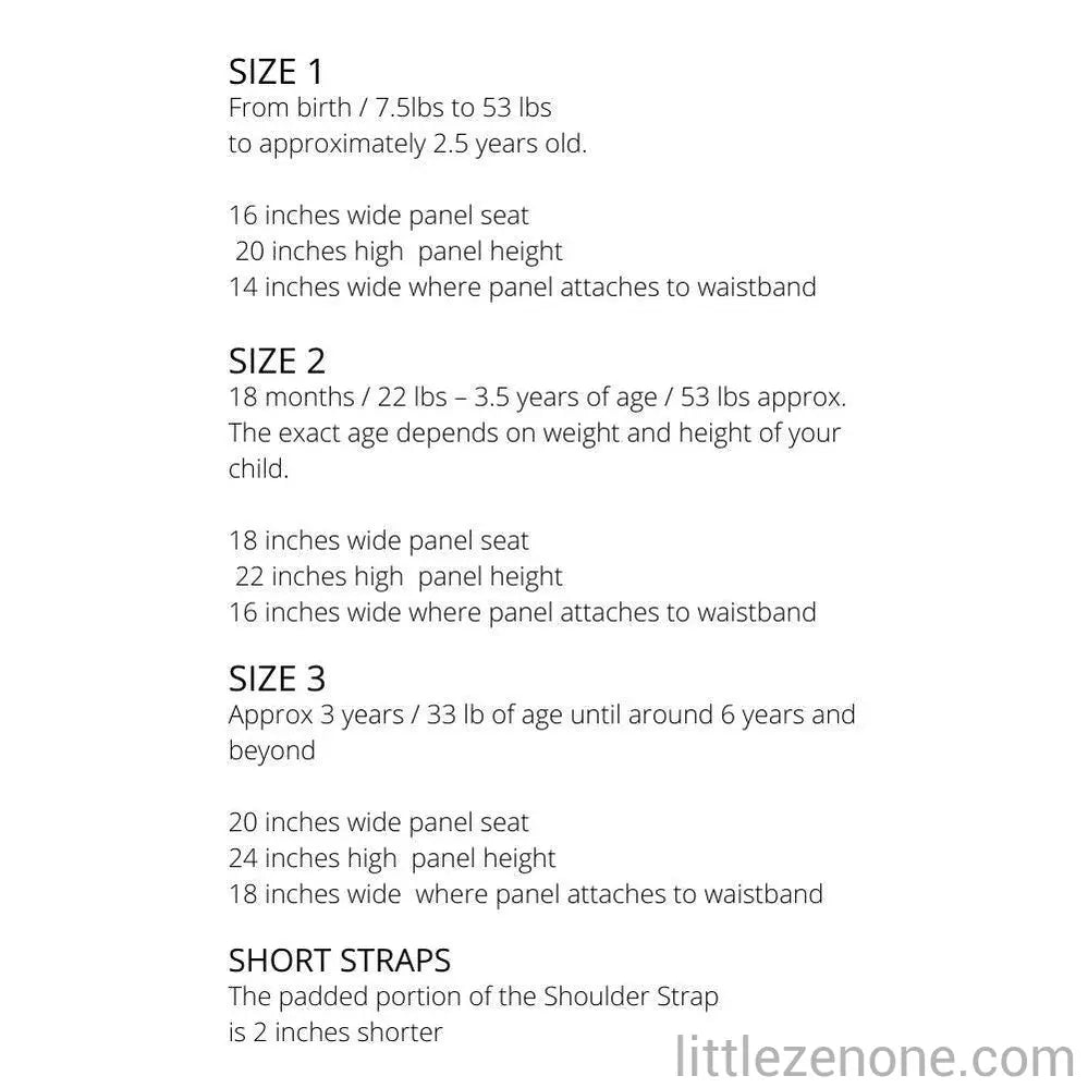 Integra Baby Carriers come in three sizes, and you should chose the size of carrier based upon the size of your little one.