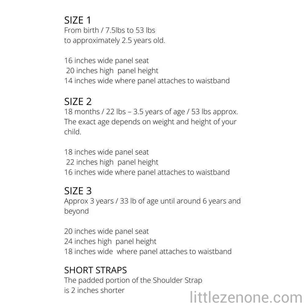 Integra Baby Carriers come in three sizes, and you should chose the size of carrier based upon the size of your little one.