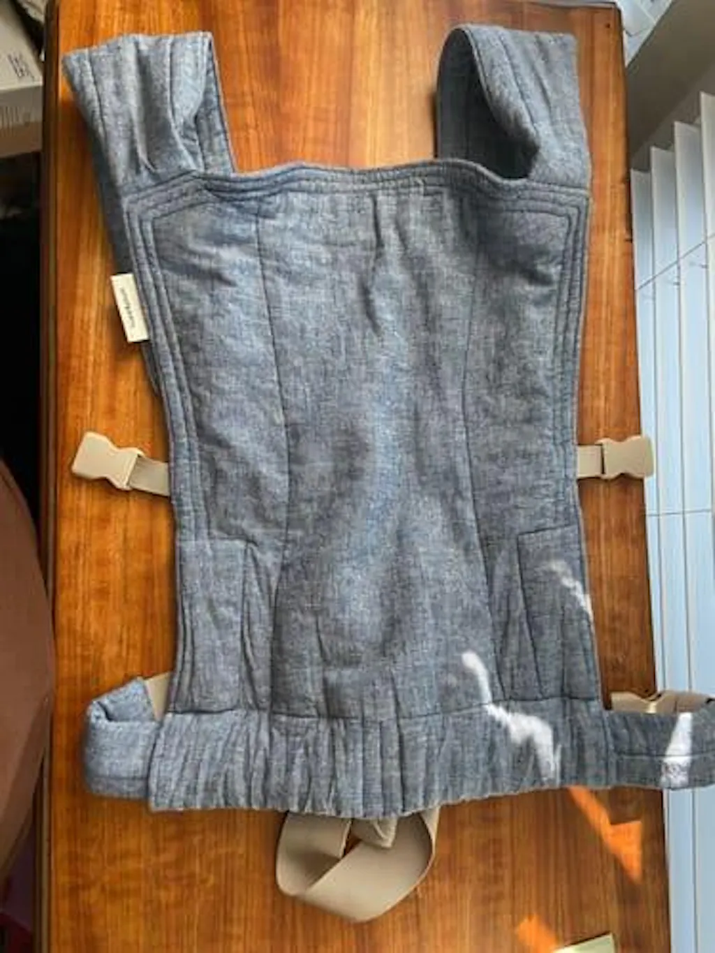 This sleek one-piece design incorporating a large sun/sleeping hood that fastens with small buckles to the shoulder straps to keep baby shaded or support a sleeping head. the ideal hot weather baby carrier but also versatile in all seasons.