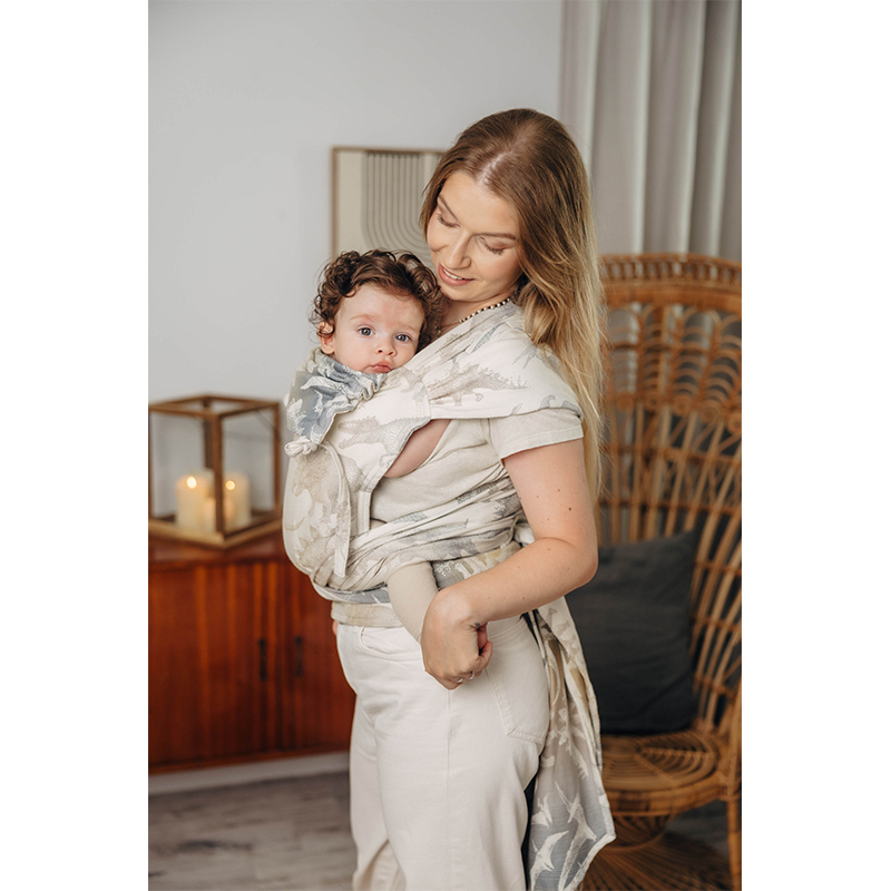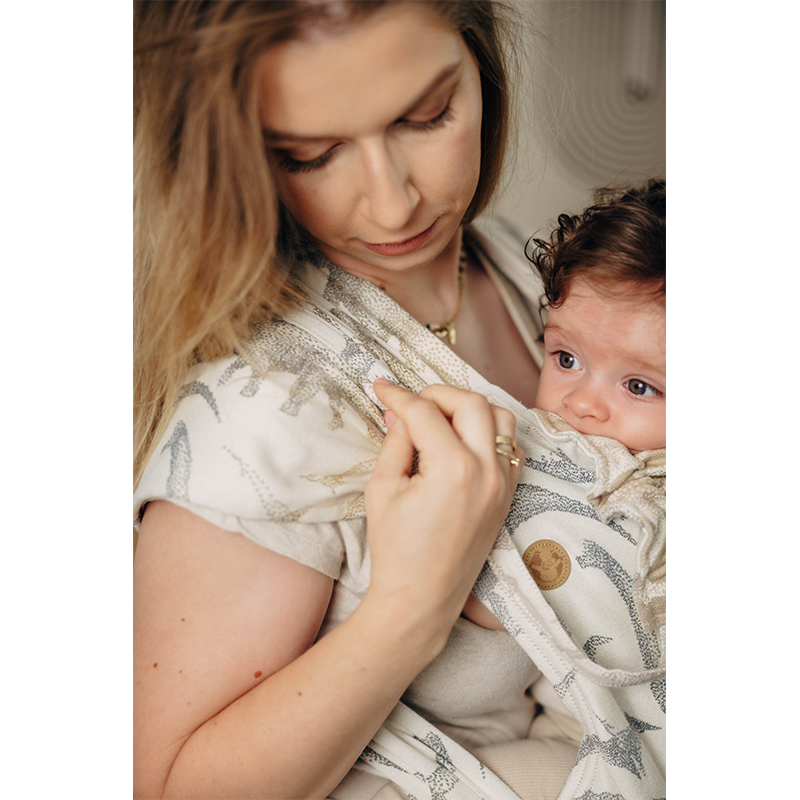 The simplicity and comfort of a soft structured carrier and the versatility of a wrap, this hybrid carrier is a hit, the WrapTai baby carrier. Wear it Tummy to tummy, on your hIp, or on you back from 4 months up.