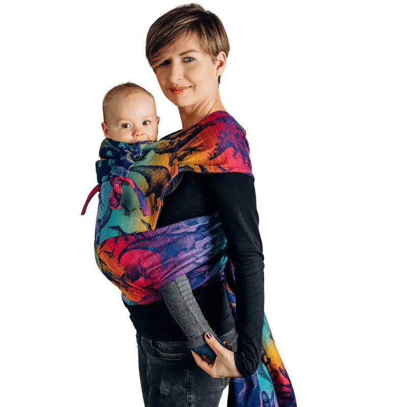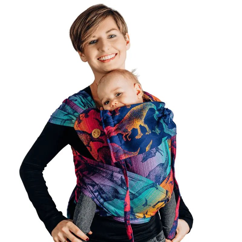 The simplicity and comfort of a soft structured carrier and the versatility of a wrap, this hybrid carrier is a hit, the WrapTai baby carrier. Wear it Tummy to tummy, on your hIp, or on you back from 4 months up.