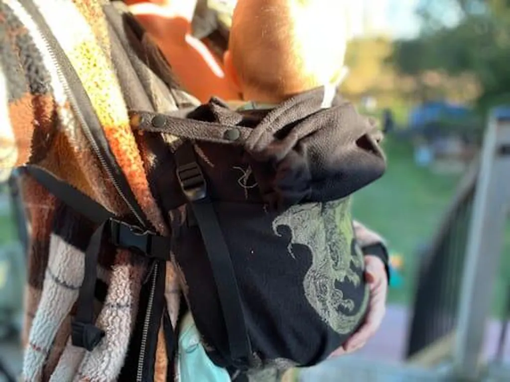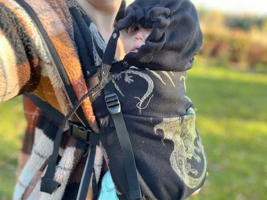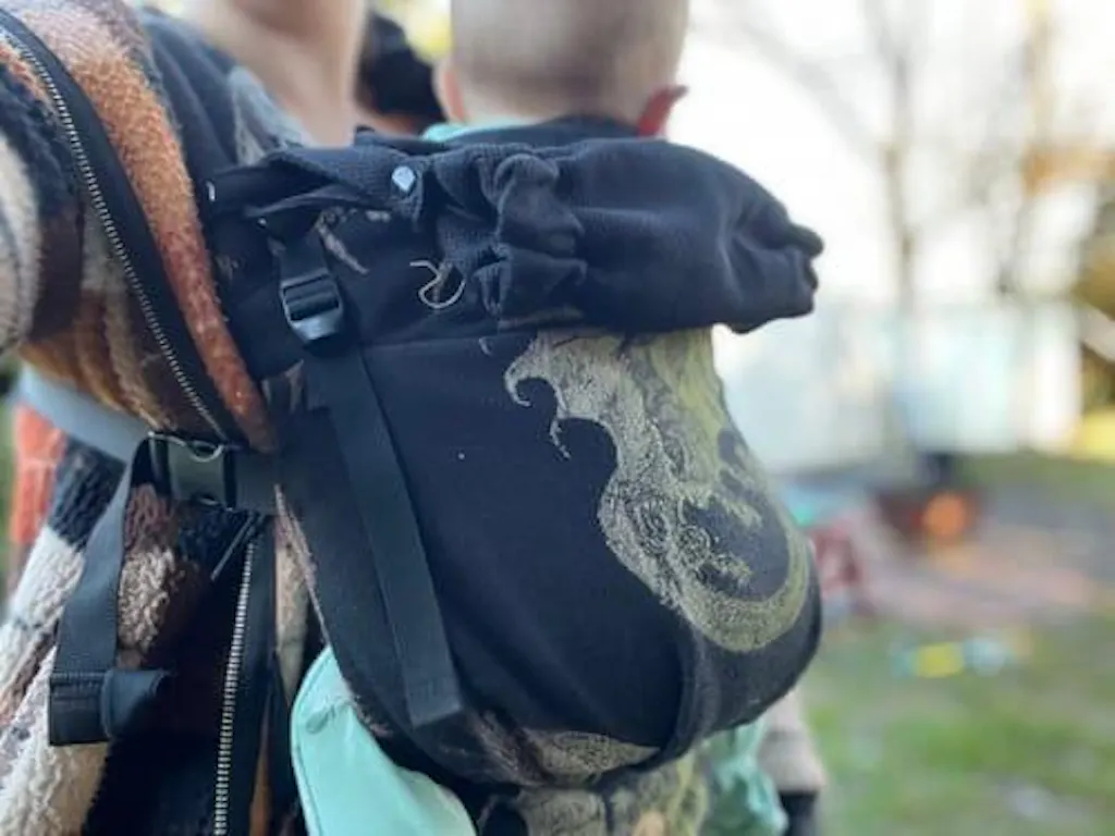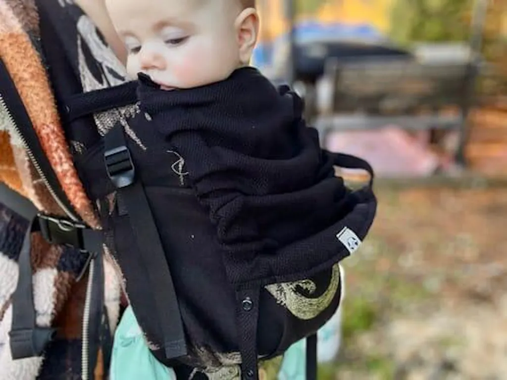 A detachable carrier hood in the Ebony Black design for your LennyLamb baby carrier. Provides head support while your baby sleeps and protection from sun and wind.