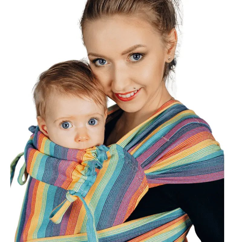 The simplicity and comfort of a soft structured carrier and the versatility of a wrap, this hybrid carrier is a hit, the WrapTai baby carrier. Wear it Tummy to tummy, on your hIp, or on you back from 4 months up.