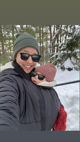 The coat features expandable side zips for a flexible fit during pregnancy or a more oversized look. Once your baby arrives, simply zip in the baby insert at the front or back for hands-free babywearing. When you're not with your little one, close the side zips for a sleek silhouette or leave them open for added comfort. Thoughtfully designed by moms, this coat includes practical details like warmly lined, closable pockets, fitted cuffs, and a cozy hood to keep you snug in chilly temperatures.