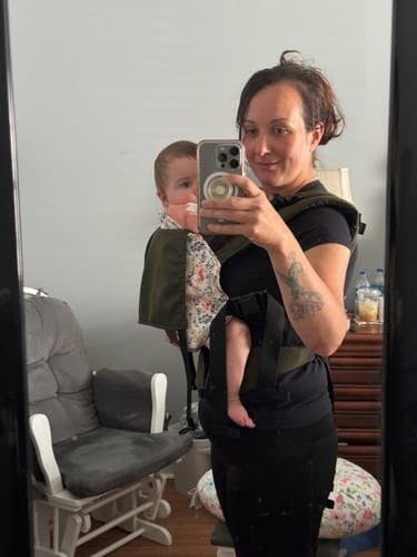 - Has an adjustable base to cinch the panel of the carrier, allowing young babies to be legs out with proper positioning and without an insert.