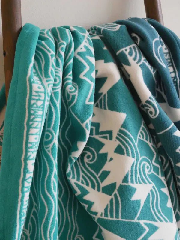 The organic brushed cotton in a beautiful teal warp creates a thick, soft and cosy blanket that’s perfect for little ones who love to snuggle up on the couch or cuddle under at nap time. You can use this as a cute cot blanket or a runner on a single bed. The compact size also makes it easy to bring along on trips or to use as a lap blanket.