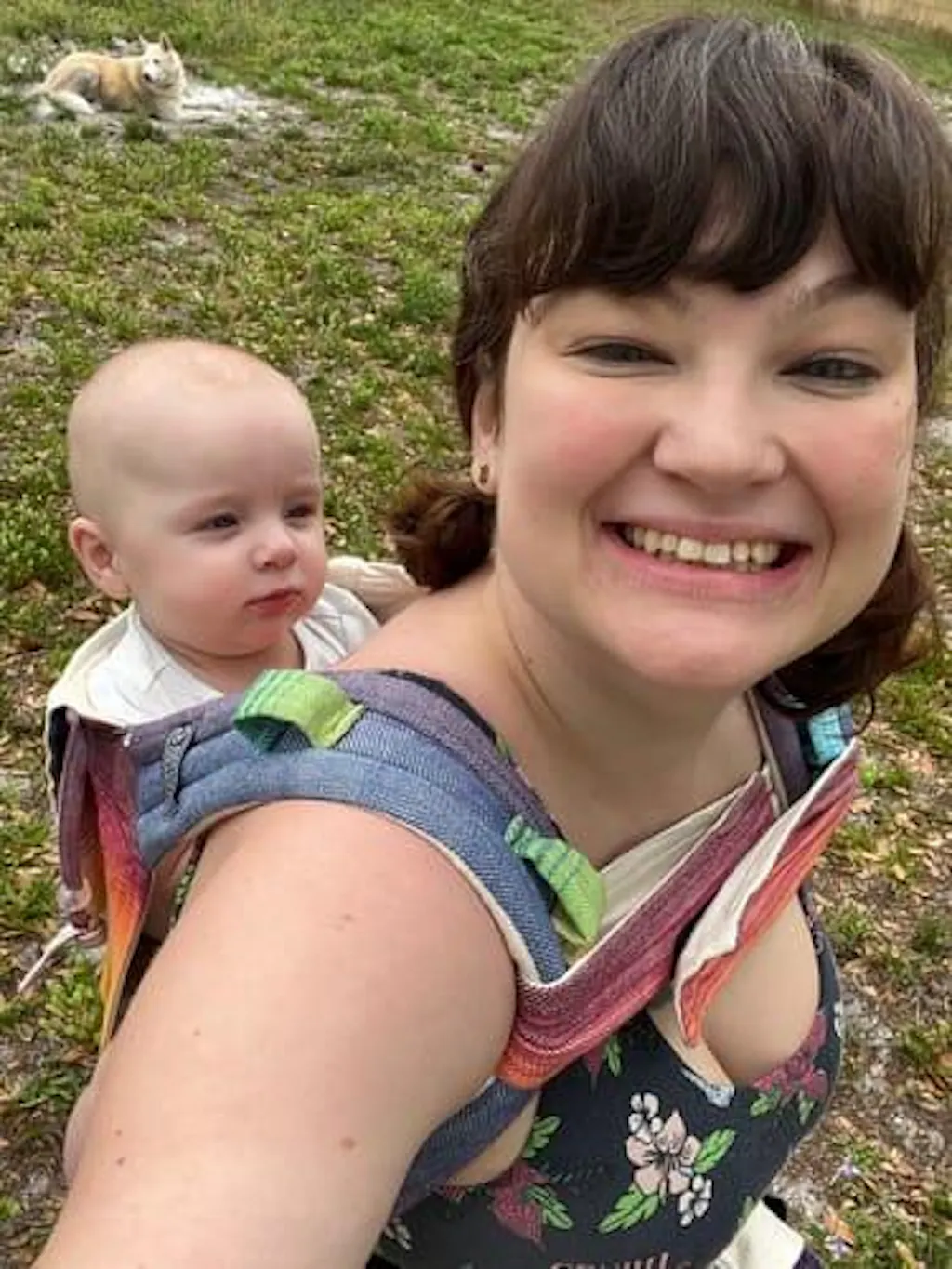 Always follow the T.I.C.K.S. guidelines for safe babywearing: Tight, In view, Close enough to kiss, Keep chin off chest, Supported back. Never use a baby carrier while driving or cycling.