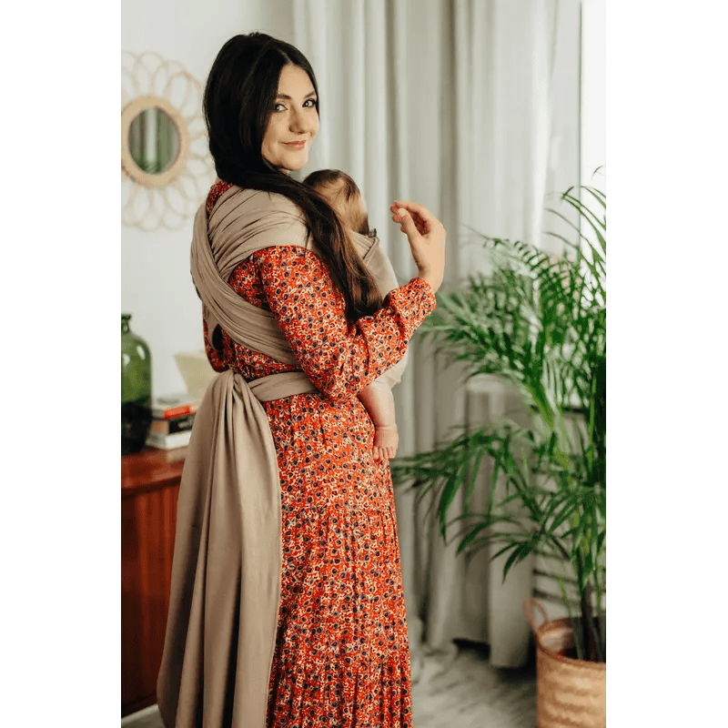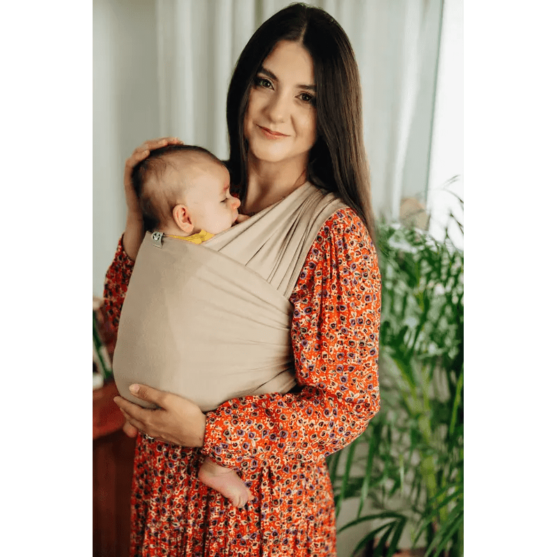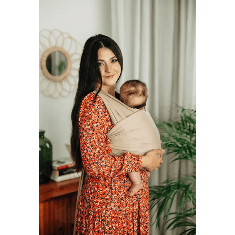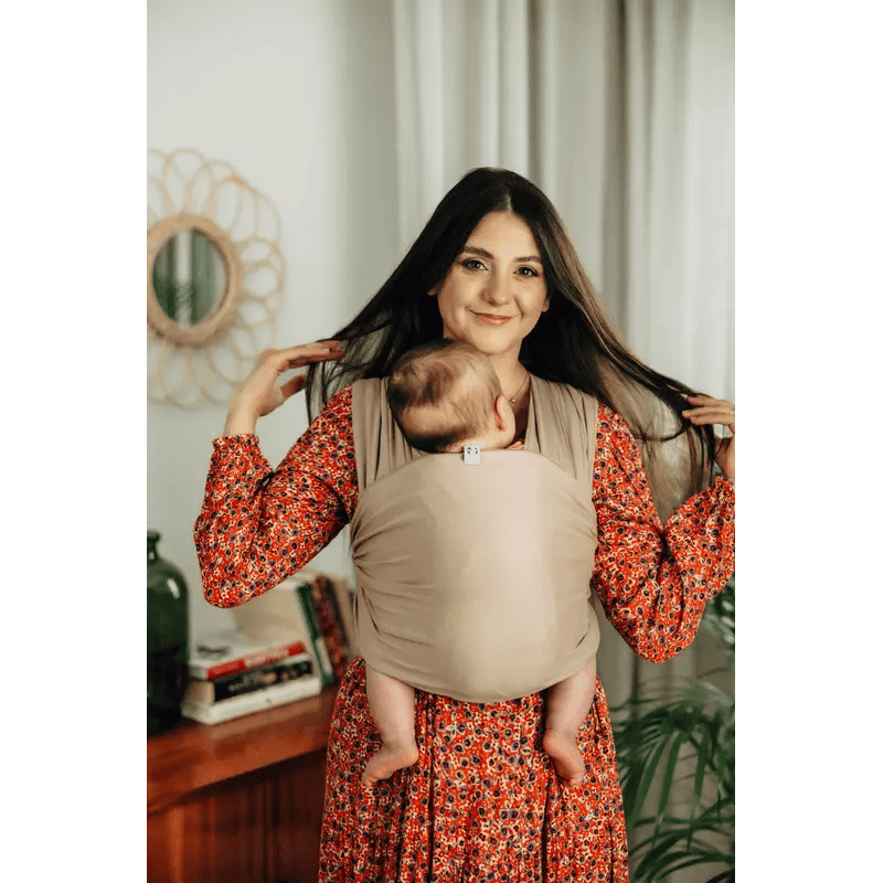 You can tie it on and then insert baby so you do not have to tie around the baby. You can put the baby in and out of it during the day without tying the sling again. Choose a stretchy wrap if you want a simple and comfortable solution for the early months