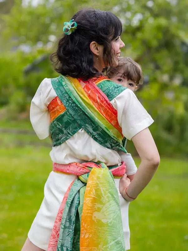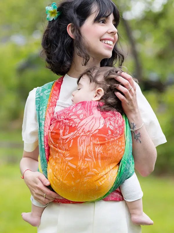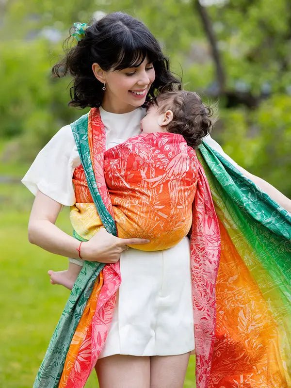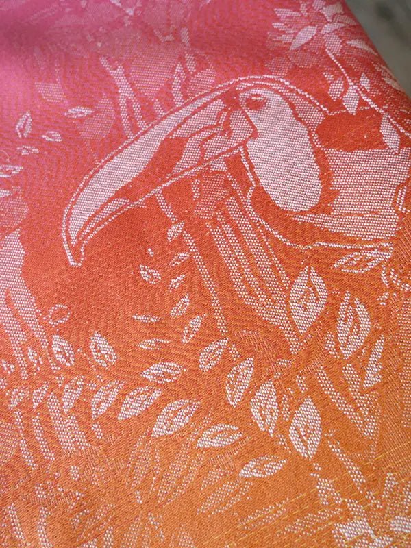 Oasis Dream is easy to wrap, with a nice amount of glide. It’s mouldable with a little stretch, making it a fantastic choice for new wrappers. This stunning design features a lush tropical jungle scene, teeming with life and rich detail. The gradient flows from berry red through warm oranges and yellows into leafy greens, creating a vibrant celebration of nature and colour that evokes the warmth and beauty of the tropics.