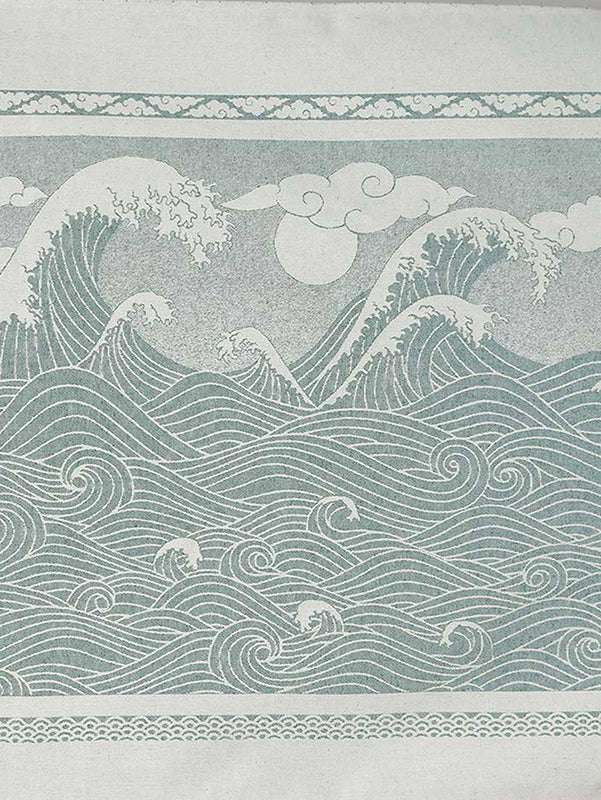 A soft blue-teal contrasts with natural ecru tones to bring a wonderfully vintage feel to the Okinami pattern. A lovely slubby yarn, our cotton and hemp blend speckles this fabric with little flecks bringing a soft and earthy feel to this beautiful shawl.