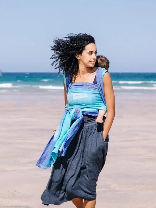 Different areas of weave texture give this breathable baby wrap a lovely tactile feel, while also adding a nice grip to this baby sling meaning it easily stays in place when wrapped. Woven with lightweight bamboo viscose and cooling Ice cotton, this handmade baby wrap is ideal for summer carrying – especially for those in hot climates.
