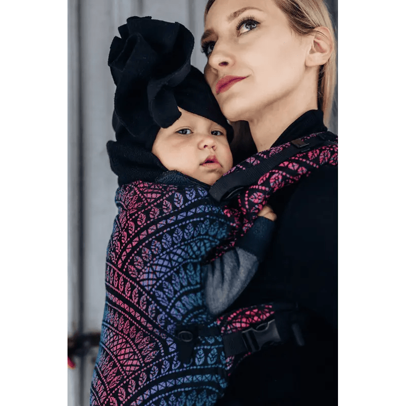 ATTENTION: Actual colors and pattern placement may vary from pictures. The color of the buttons can vary from the one presented in the pictures. Depending on the LOT of the product, the straps regulating the size of the carrier's panel can be solid black or in the colorway of the carrier.