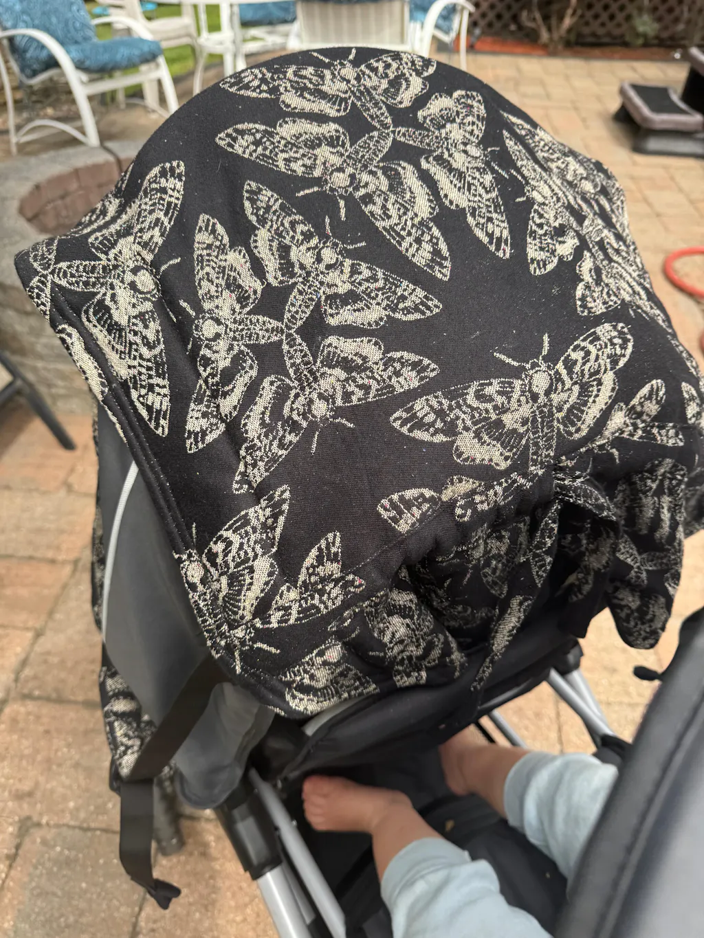- Detachable hood Adjustable head support for naps and weather protection.