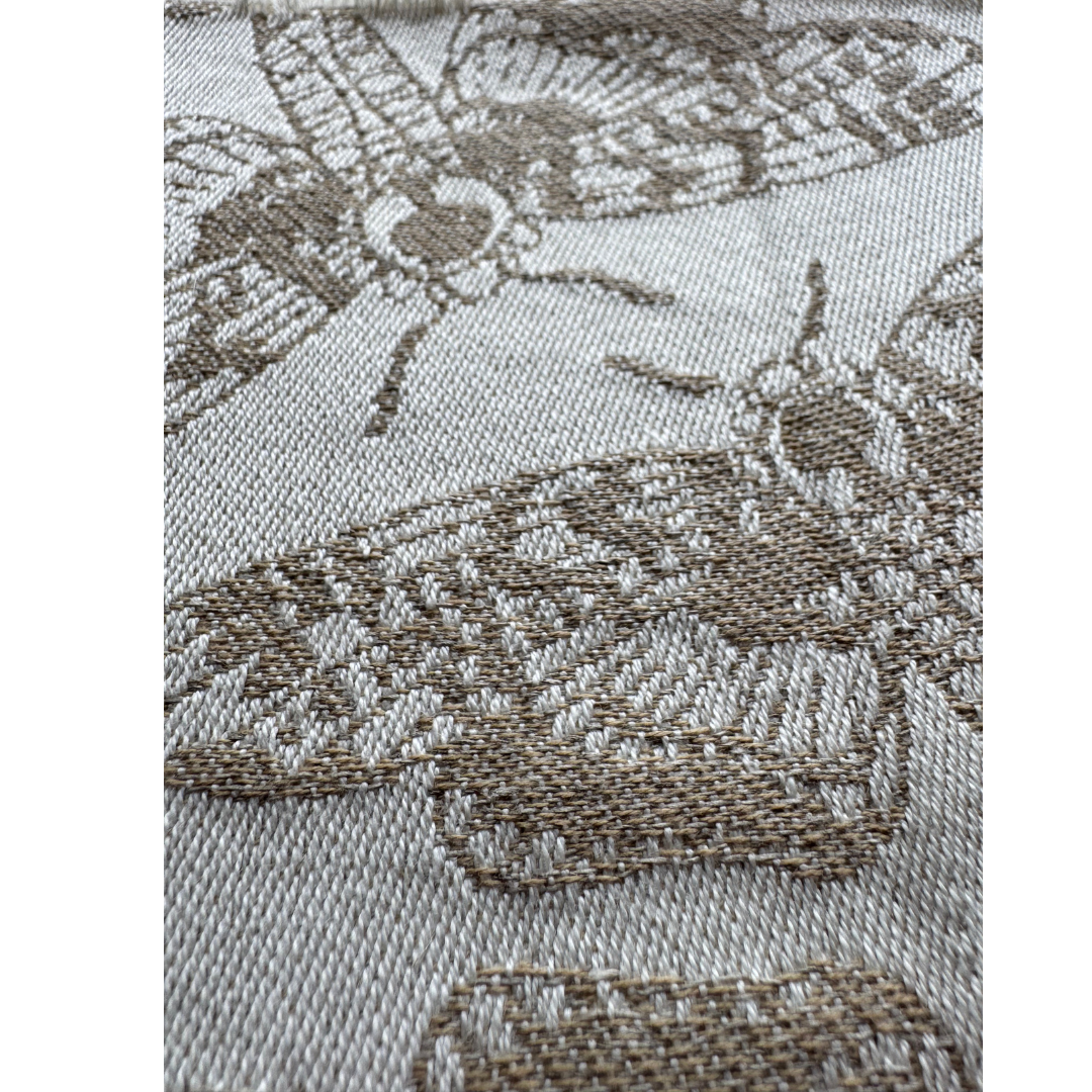 Woven from natural, undyed cotton, 25% natural undyed linen, and a touch of golden beige cotton, crafted in partnership with LennyLamb. Naturally cool and beautiful.