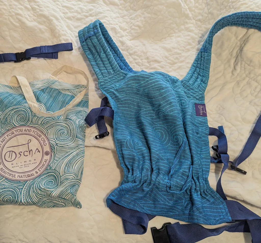 The Bairn is Oscha's full buckle carrier, designed for parents who want the beauty and comfort of woven wrap fabric with the ease of buckles. Made from organic cotton and hemp, it features an apron-style waist, lightweight flexible padding on the shoulder straps, and dual adjustable buckles. The mouldable straps can be crossed for back carries or used with the included chest clip. The built-in panel adjuster grows with your child from newborn through toddlerhood β all ethically handcrafted in Oscha's solar-powered Scottish workshop.