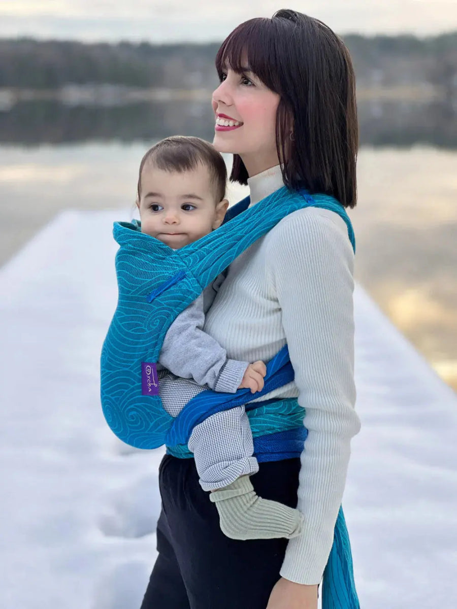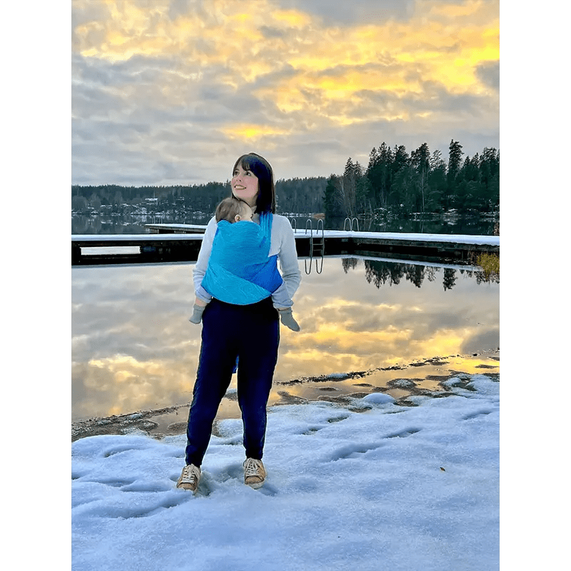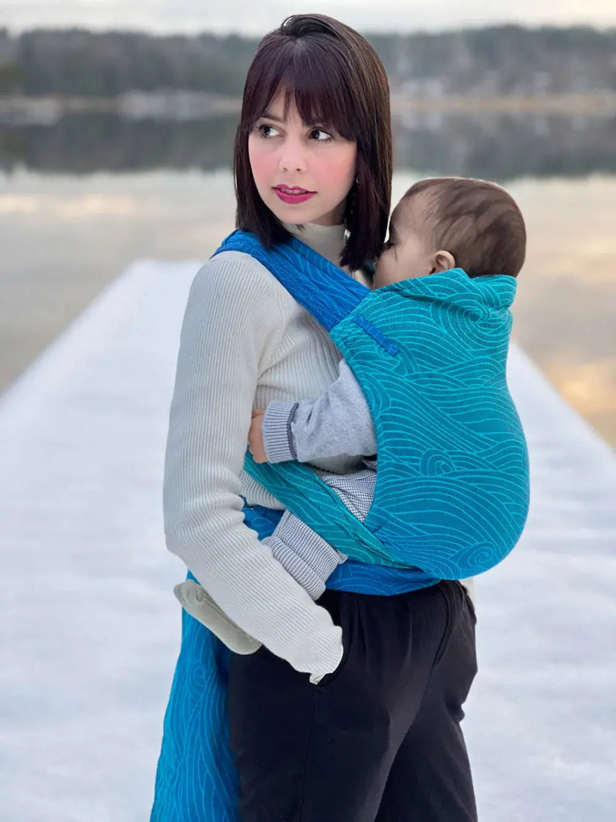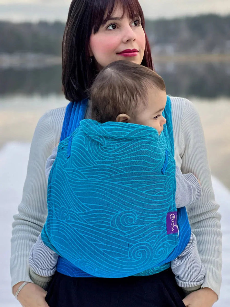 Woven on a gorgeous fade of fresh ocean blues, this beautiful baby carrier features a blend of soft organic cotton and strong hemp, making it wonderfully supportive. The Cairis carriers are very versatile and can be used for a front or back carry.