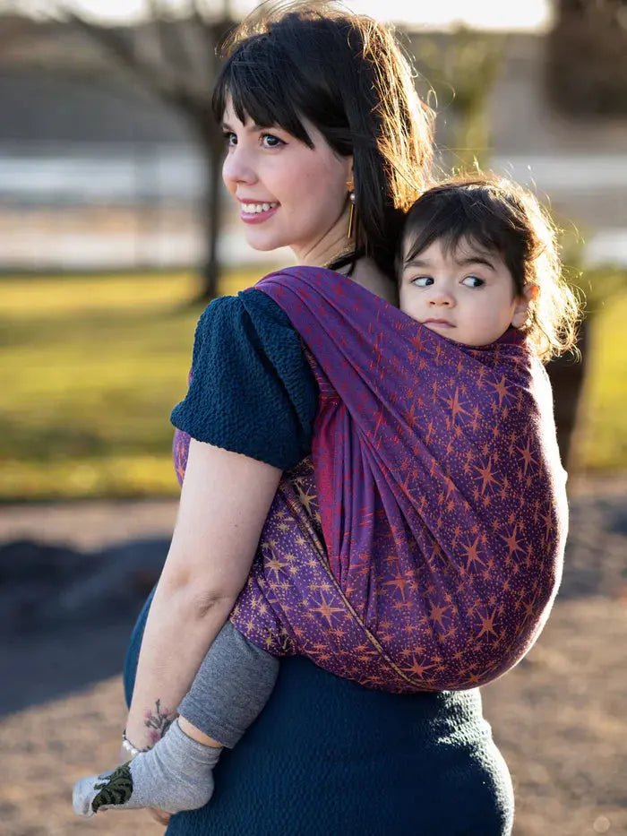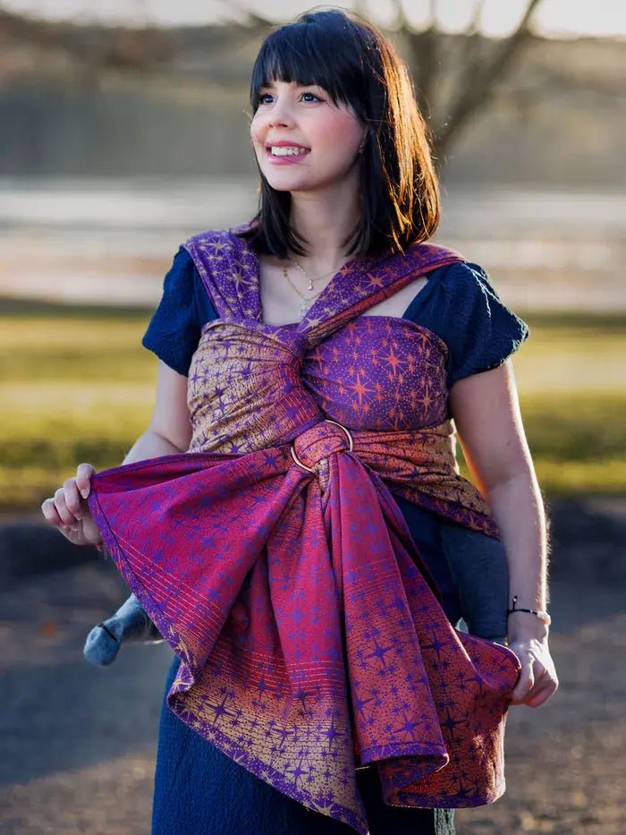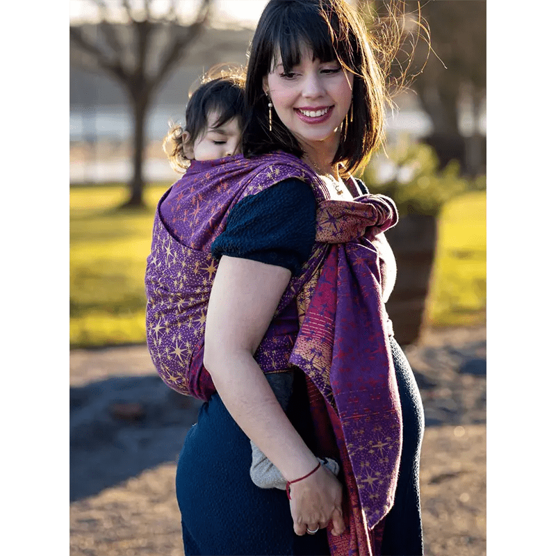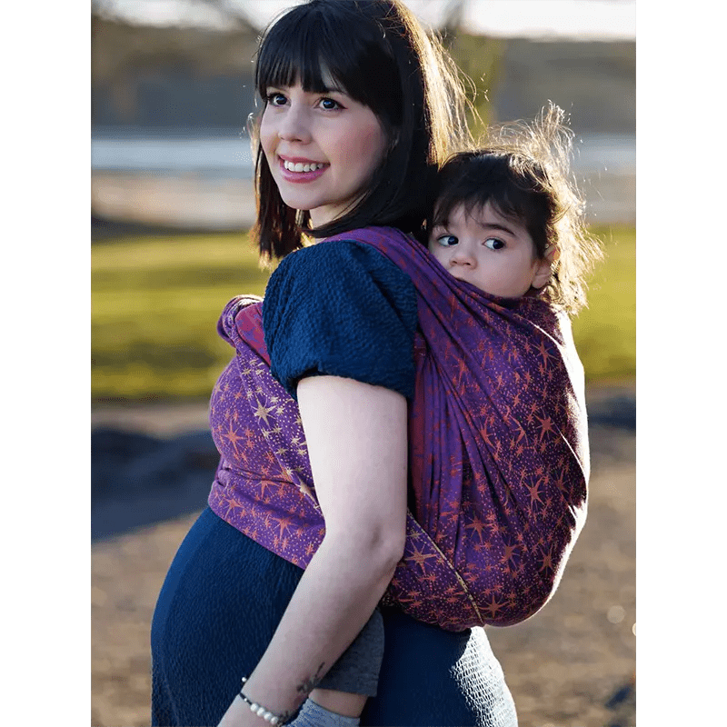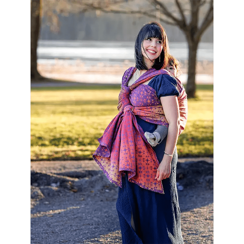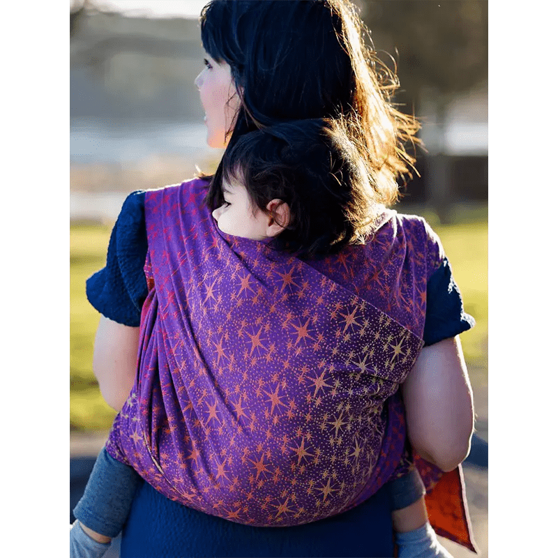 With its malleable nature, this wrap provides a comforting cush for the shoulders, is versatile and suitable for all ages. Its magical colours, charming design, wrapping qualities and ease of care make it a great choice for beginners and experienced wrappers alike. The perfect sling for every day magical adventures!